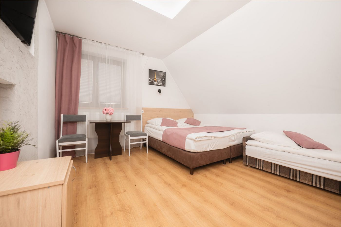 - w pokojach 2, 3 i 4 osobowych z pełnym węzłem sanitarnym, TV, Wi-fi, część z balkonami